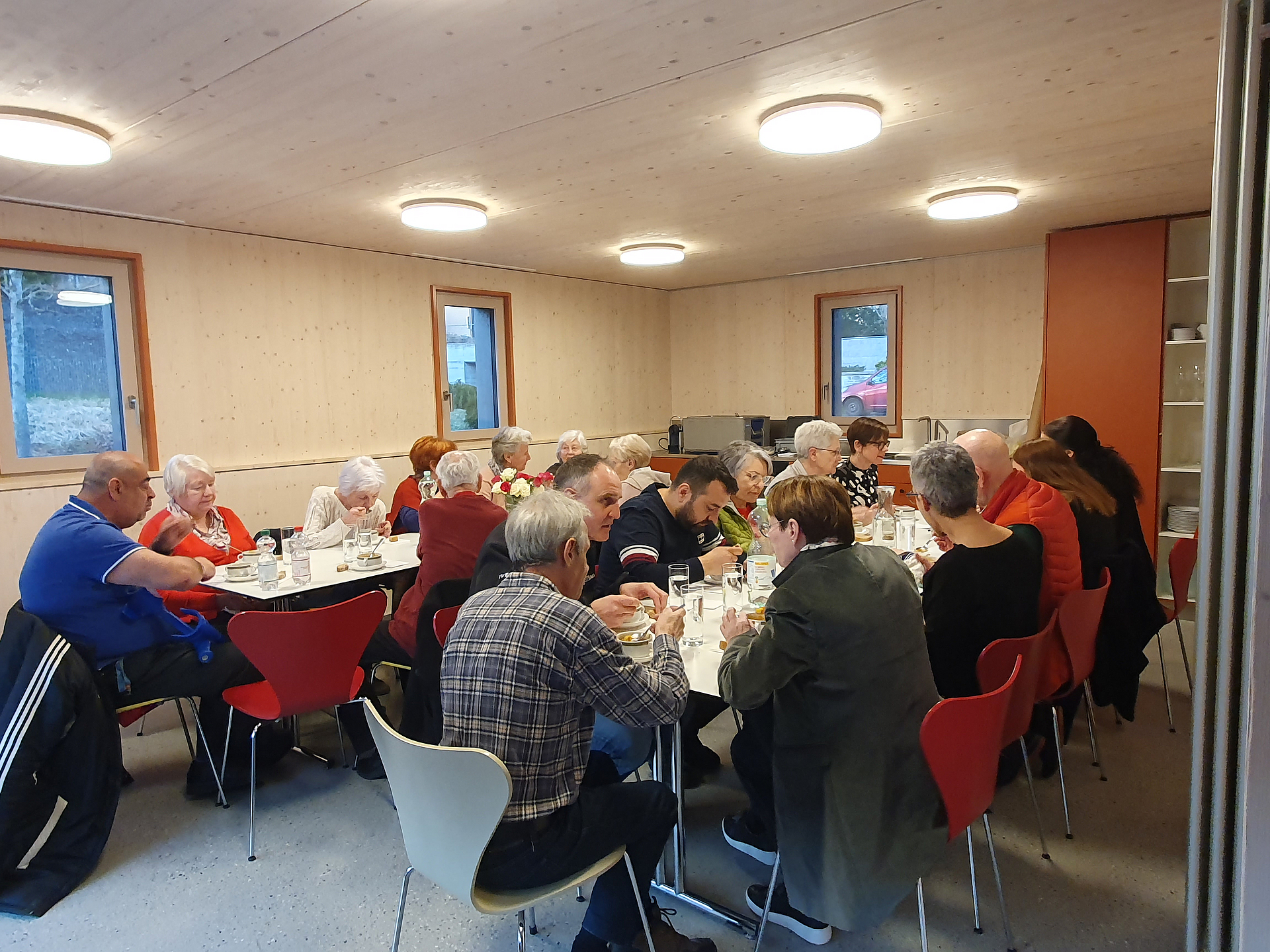 Danach gab es reichlich Raum für Fragen. Viele konnten entweder vom Architekten oder dem Bauleiter direkt beantwortet werden. Viele Mietende blieben dann noch zu einem gemütlichen Zusammensein und Austauschen und genossen eine feine Minestrone-Suppe. In diesen Gesprächen tauchten weitere Fragen auf, die wir sammelten und in den weiteren Sanierungsprozess einfliessen lassen. Etwa wer helfen kann, wenn Vorhänge demontiert werden müssen oder schwere Töpfe auf der Terrasse verschoben werden sollen. Hier organisieren wir in unserem Netzwerk einfache Unterstützung. Oder wie sich Mietzins und Nebenkosten verändern werden. Dies wird aktuell berechnet.