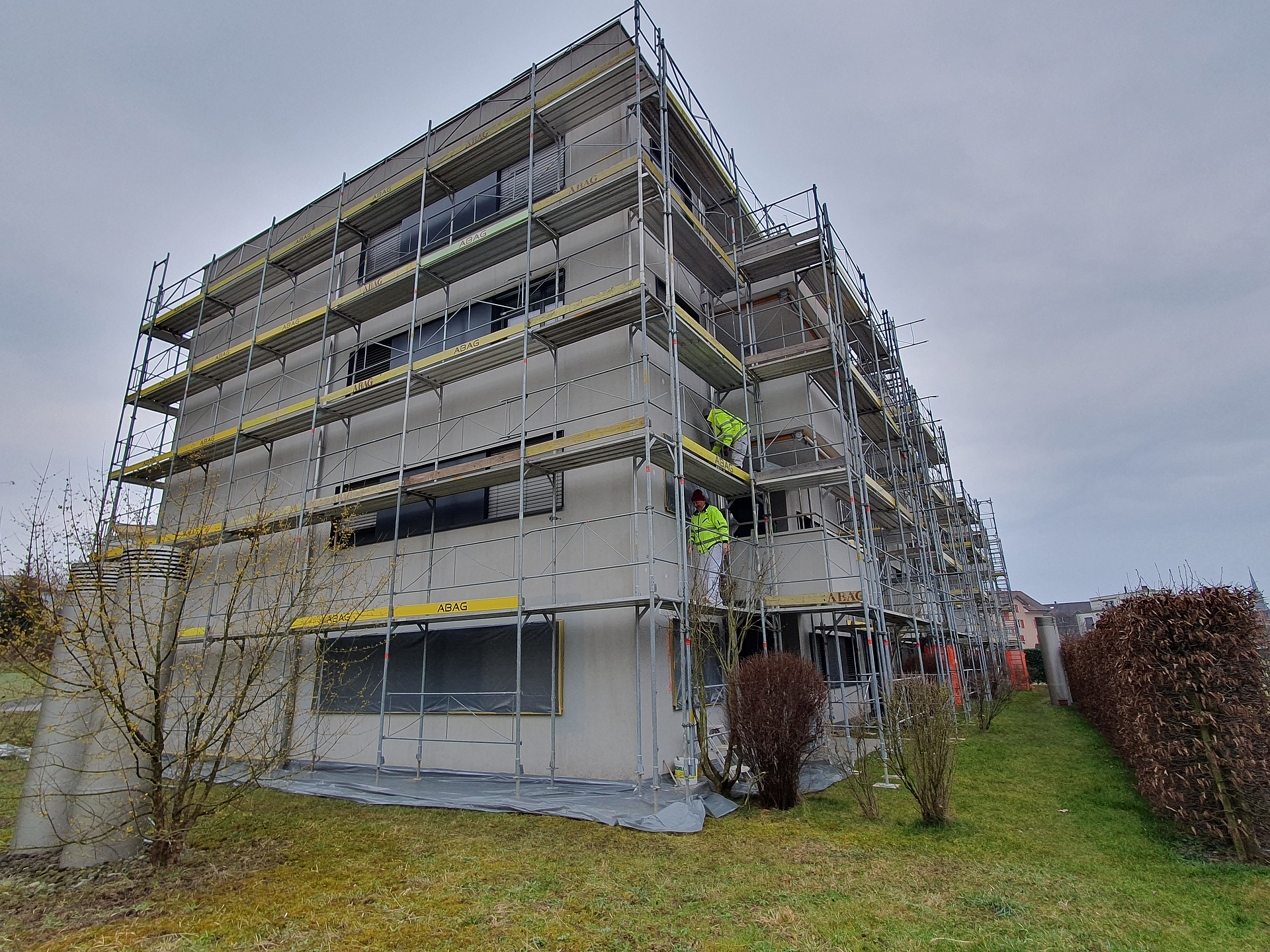 Die Sanierungsarbeiten an der Schluechtstrasse 1, 3, 5 und 7 dauern von Ende Februar 2023 bis ca. Mitte Juni 2023.