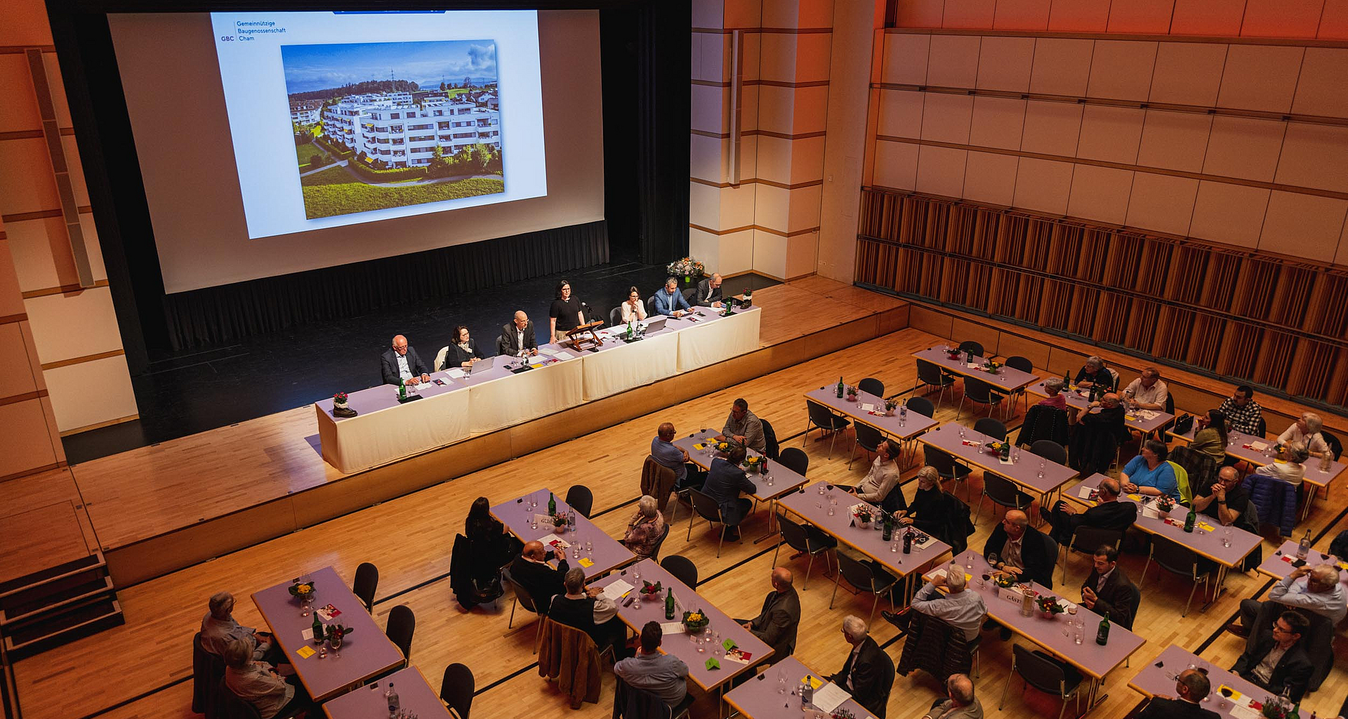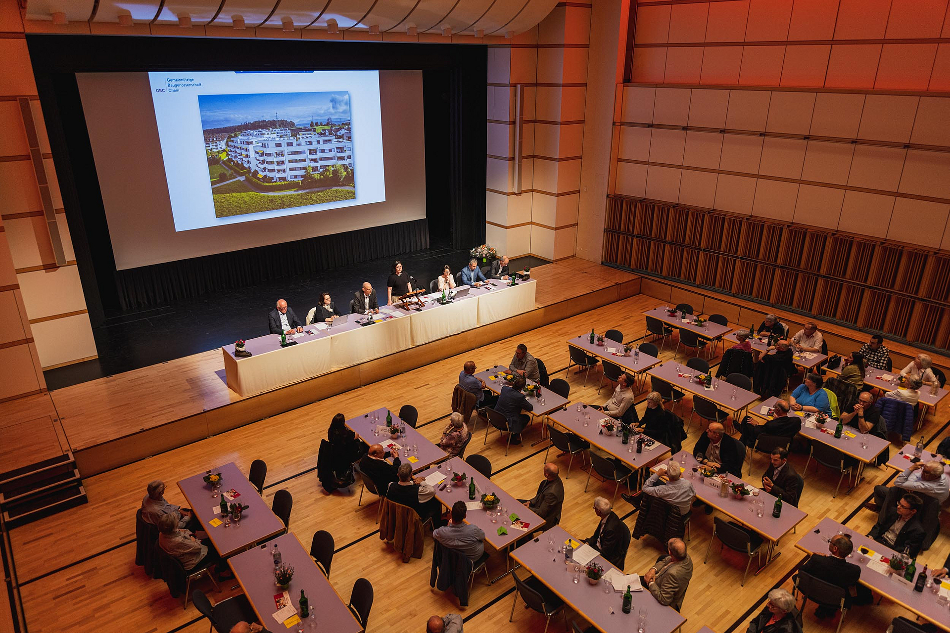 Rund 100 Mitglieder, Genossenschafterinnen und Gäste versammelten sich am 13. April im Lorzensaal, um der 58. Generalversammlung beizuwohnen. Nach zweijähriger pandemiebedingter Pause konnte die Veranstaltung zur grossen Freude aller physisch durchgeführt werden.
