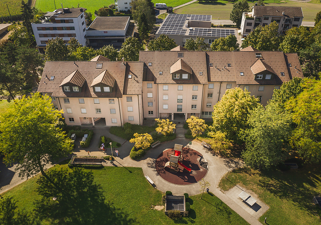 Die Wohnungen sind flächenmässig sehr grosszügig angelegt. In den Dachgeschosswohnungen und den 1-Zimmer-Wohnungen ist die Küche offen, ansonsten separat abschliessbar und bietet Platz für einen Esstisch. Die Küchen sind zweckmässig, ohne grossen Komfort eingerichtet. Alle Wohnungen ab 3-Zimmer verfügen über Bad/WC und Dusche/WC. Die dreistöckigen Häuser verfügen über keinen Lift!